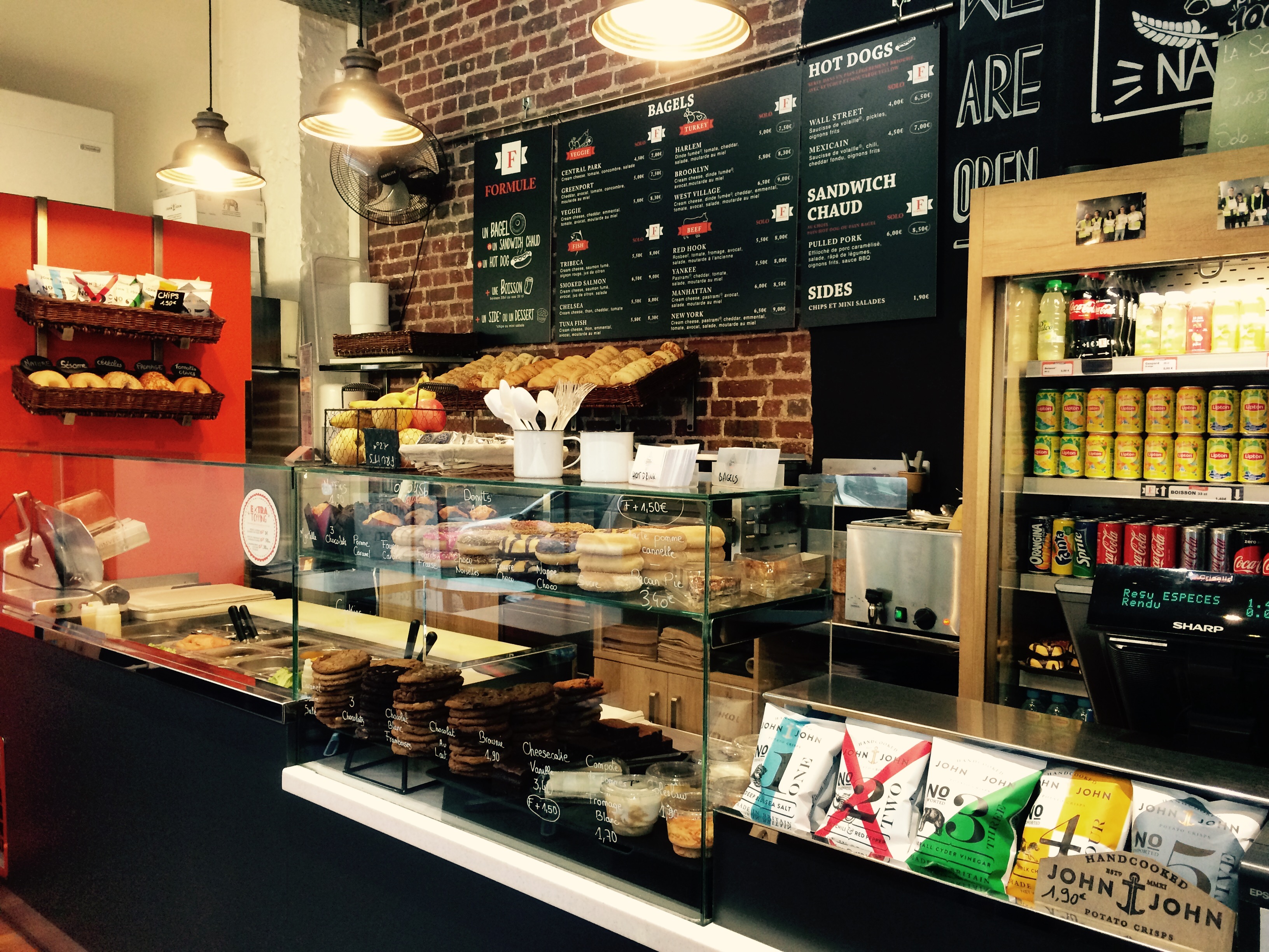 "Un resto ambiance loft New-Yorkais, une équipe sympathique aux petits soins, des produits frais et vraiment gouteux ! Un large choix de Bagels, Hot-Dogs et Desserts ! Je n'ai pas encore testé la salade - à faire la prochaine fois."